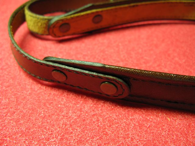ポーチショルダーにも使えるショルダーベルト。肩に当たる部分に滑り止めを期待してトコ面を出して縫い付けてあります。この滑り止め部分は最初トコ革で創ろうと思ったのですが薄いトコ革は強度がないので耐久性を考えてギン付きの革を使っています。 ジャンククラフターにとってはベルト状の物は鬼門です。それは大きい端切れがないから・・・。本体を創るより先にベルトが取れるかによって制作できるかどうか決まってしまいます。 |